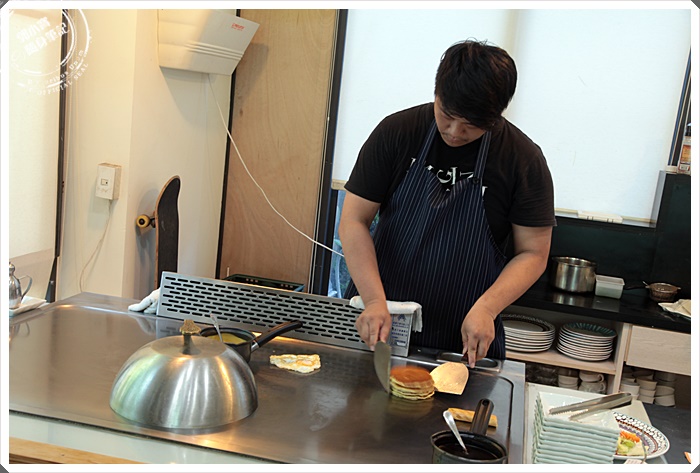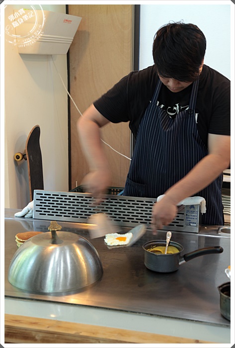 | 鬆餅放在鐵板上煎過,這倒是真的滿新奇的,不過看起來似乎只是個噱頭,不過蛋在鐵板上煎出來是有點可惜,那麼大的鐵板應該煎些更可口的食物阿XD |
