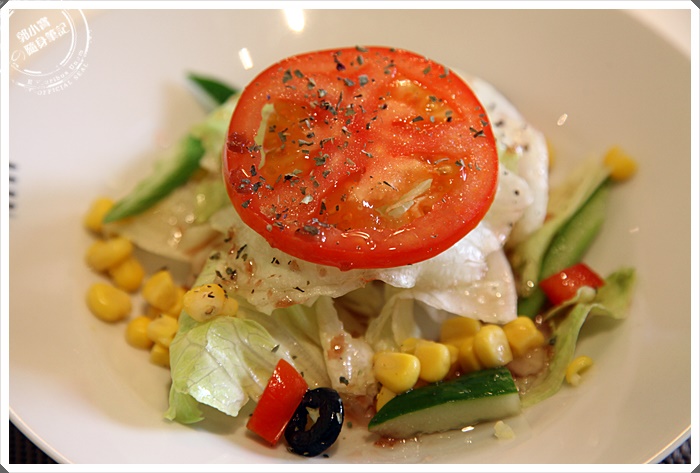 | 套餐沙拉吃起來頗為普通,但是Livia自己條的醬汁卻比較合我的胃口,酸中帶甜的滋味讓人胃口大開。 |