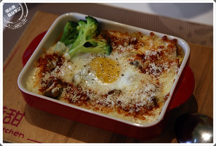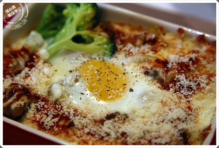 | 打顆蛋後再放進烤箱焗烤,完成在撒上起司粉,看起來確實頗為美味。 |