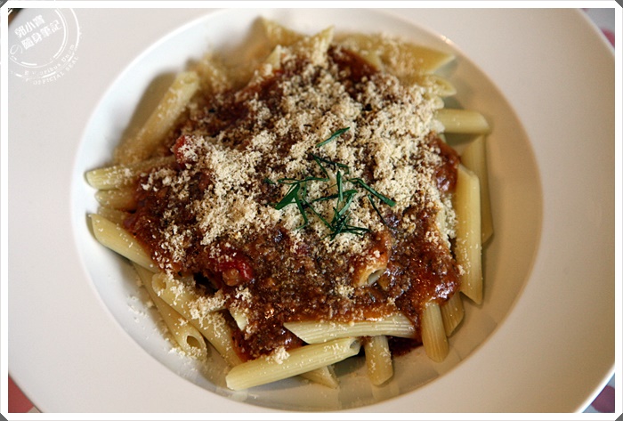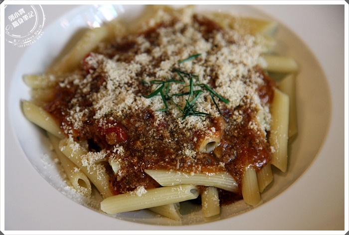 | 剛上桌的時候就聞到起司的味道超濃郁的,肉醬是Livia自己熬煮的,看起來相當的可口,份量也不少。 |