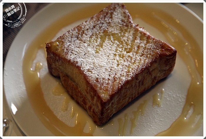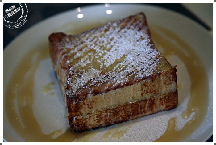 | 看起來很像是港式西多士,只是厚度比較事厚片土司,看起來熱量就一整個爆表了,不過用看的就知道很好吃了,因為又是蜂煉乳又是糖粉的,這樣基本上沒有不好吃的道理。 |