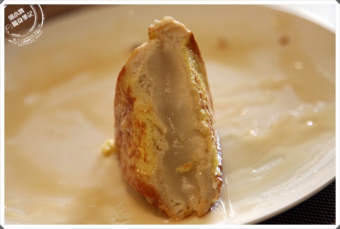 | 切開吐司後裡面還包著Q嫩的麻糬,這真的超特別的,煉乳跟糖霜+上法式吐司的蛋皮香氣,咀嚼中還可以感受到Q嫩的麻糬真的超特別的,口感特別的好,我覺得最讓我喜歡的就是薇甜的東西真的不會那麼的甜,這樣吃起來最剛好,推薦! |