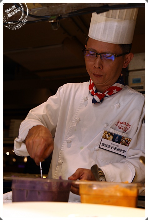 | 趁著空檔溜進了廚房拍攝陳主廚製作餐點的專注神情,這帝國牛排館的威名可都是陳師傅精湛的手藝建立起來的,除了精湛的手藝以外,還要有創新的巧思跟大膽的創作精神,才能端出一道又一道讓人驚呼美味的作品。 |