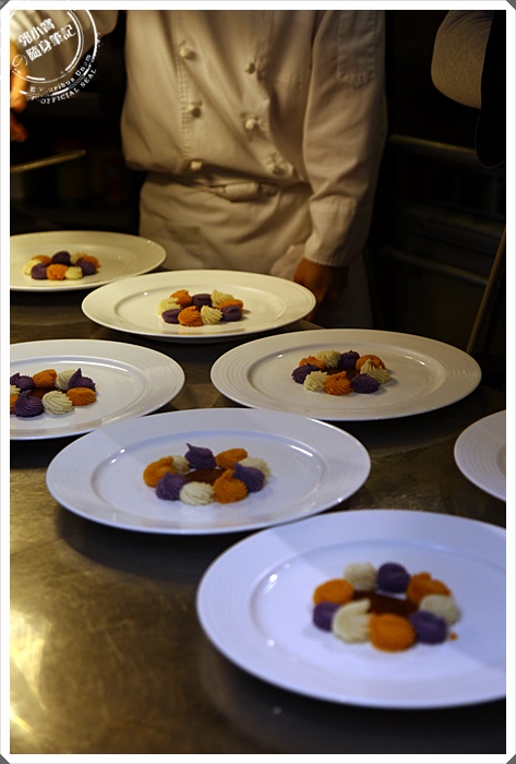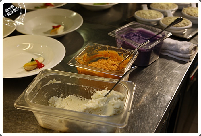 旁邊的薯泥真的是畫龍點睛的效果,除了漂亮以外,重點是每一種薯泥陳師傅還有特製過,每一個顏色的薯泥吃起來的風味都不同,有的味道很淡甚至沒有味道,有的卻是濃郁順口,每一口都是令人驚喜。