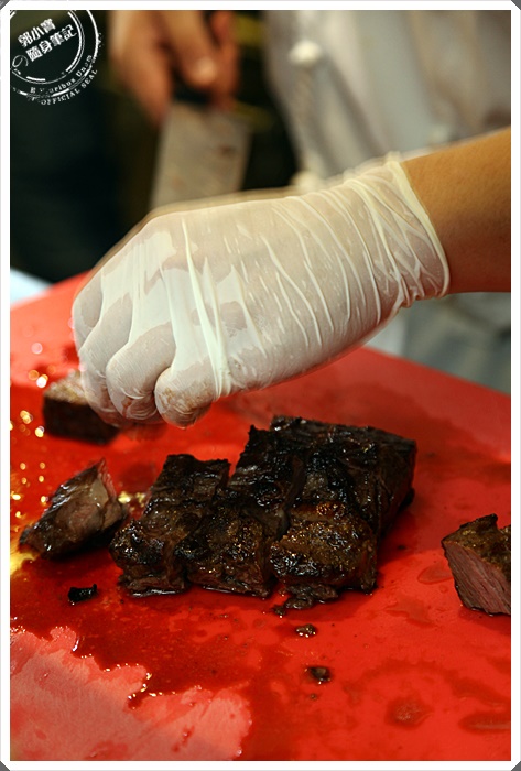 | 這時候廚房忙著把今天的主角老饕牛排分切中,看著那外皮有點焦黑的感覺還滿好奇的,這樣的牛排會好吃嗎? |