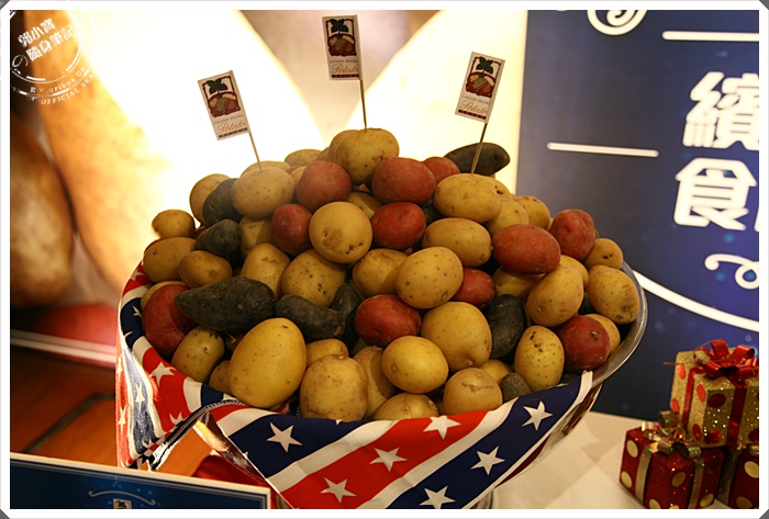 | 今天到了現場才認識了原來馬鈴薯有那麼多的種類,美國因為地太大了,加上氣候溫度都不一樣,所以也重出了許多不同品質的馬鈴薯,比較常見的就美國褐皮馬鈴薯、美國黃肉馬鈴薯,還有比較少見的美國紅皮馬鈴薯跟拇指馬鈴薯;紫皮馬鈴薯等,相當多樣化的馬鈴薯看得我是眼花撩亂。 |