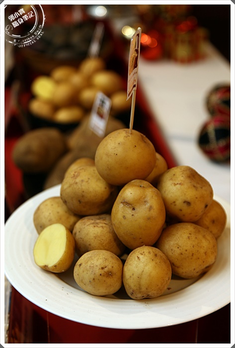 | 陳主廚與美國馬鈴薯在台推廣協會人決定送給大家一個不一樣的聖誕餐,以馬鈴薯為主角搭配老饕牛排,限時推出,陳師父說他為了這主題足足傷腦筋想了好幾天,他說這是很困難的認識,但是我覺得陳師傅真的很厲害,因為每一道都讓我們超驚豔的啊!! |
