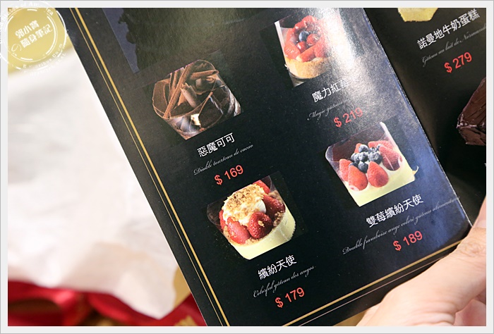 | 法國的秘密甜點從蛋糕到宣傳單其實就像他們的標語一樣,外表真的都沒有甚麼太大的特色,但是後面那一句越不簡單的內容物真的讓人很好奇,跟我們一同去的朋友有吃過他們家的蛋糕,真的頻頻點頭說它們家的蛋糕真的用這價錢買是值回票價的。 |