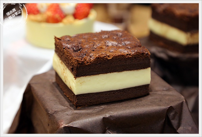 | 上下兩層的巧克力蛋糕體比較紮實,中間的起司相當的滑口,入口咀嚼的口感層次非常豐富,濃郁的巧克力跟香濃牛奶搭配是萬年不敗滋味,像我這樣喜歡重口味的人就會很喜歡,我個人覺得它們家的奶油跟起司都超厲害的! |