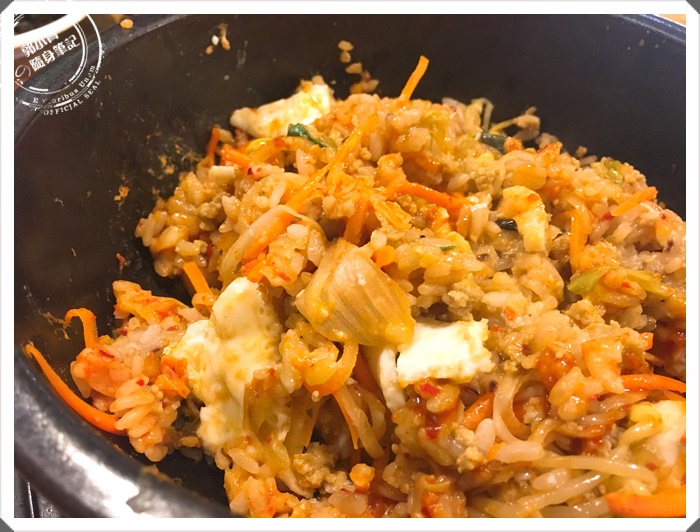 拌飯起來的樣子!寶妹是個怪咖,所以不喜歡石鍋拌飯有鍋巴,因為會黏牙齒很痛苦(沒辦法跟老大郎一樣),這裡就不特別弄鍋巴出來給網友瞧瞧了!