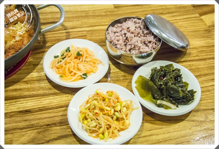 小韓國的份量比較特別,可以直接選擇一人份或兩人份,鍋類還有附餐小菜紫米飯和茶凍唷!