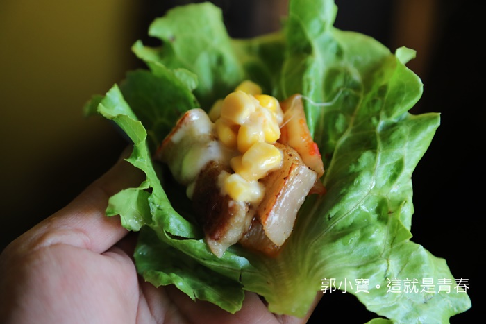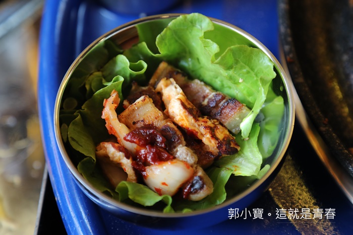 | 把五花豬跟梅花豬一起包進生菜加上泡菜還有辣醬一起大口塞進嘴裡,那飽滿水分的肉感咀嚼起來真的太滿足了。 |