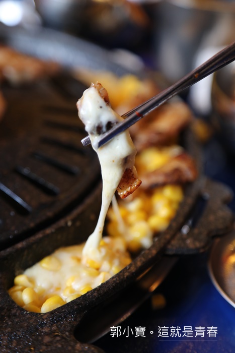 最銷魂的玉米起司是年輕人的最愛,看看這牽絲的萬惡之首,光是這些配色就夠我搭配白飯狂吃到飽了,雖然沒有收服務費,但是服務人員還滿勤勞的幫忙把配菜補滿,除了自取餐具以外,其實外場服務生還是樣樣服務都來,真的太感動了。
