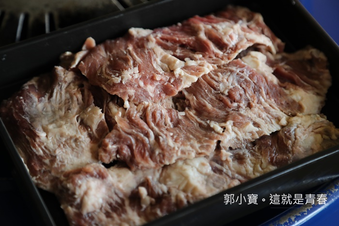 | stand up韓道立燒的肉品只有簡單的三種選擇,豬肉就是五花跟梅花,一樣直接上肉多多系列,真的太誇張,肉多多系列幾乎就可以一次佔滿了整個烤爐,重點他們家的肉真的都超厚的。 |