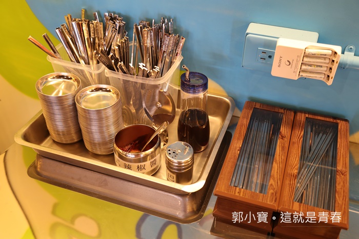 | stand up韓道立燒之所以受到年輕人的喜愛不外乎是免收服務費又可以附菜吃到飽,因為沒有收取服務費的關係,所以餐具都是在一旁的桌子自取,白飯也是無限量提供,也在這後方的工作台上。 |