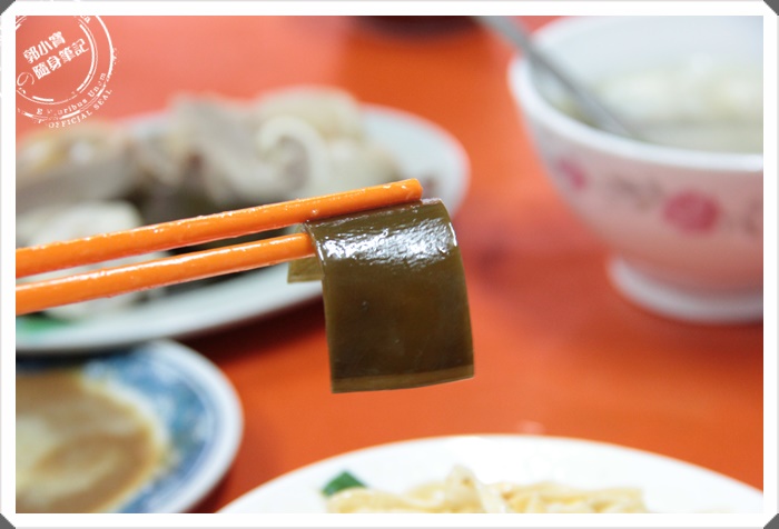 | 剛剛寶妹前面有提到熱門小菜,出乎意料的特色小菜竟然是海帶,哈瑪星汕頭麵的海帶是用整片大片的乾昆布去泡水軟化,直接就將海帶的原味呈現給客人,不像外面其他的店家都會經過滷汁這一關,寶妹目前還沒有在外面看見這樣的海帶,網友們有機會朝聖一定要嘗試一下! |