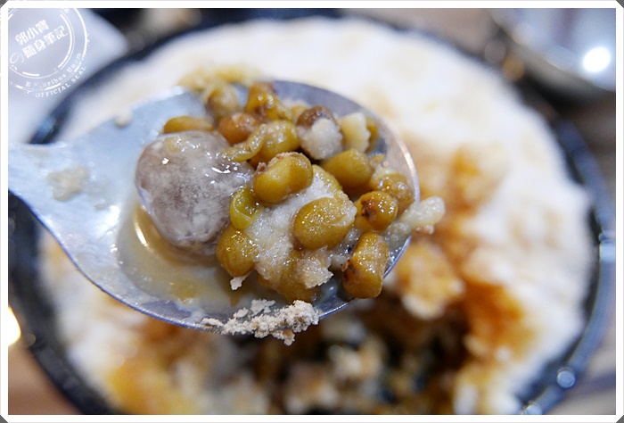 整份的用料大概有仙草凍/玉珠/珍珠/麵茶粉/芋圓/綠豆/包心粉圓/爆漿小流沙~~~其中綠豆是本來就在冰品當中了!!要記得一口冰一口料的這樣吃才標準。