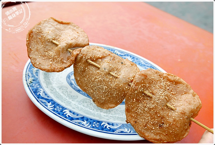 | 就是這個銷魂的烤黑輪,完全使用炭火來烤,有一種自然的焦香味瀰漫在空氣中,這邊的烤黑輪不是完全乾乾酥酥的那類型,特別的是中間烤過後還保有濕潤,而旁邊周圍還能夠香酥無比,這就是代天宮烤黑輪的威力!! |