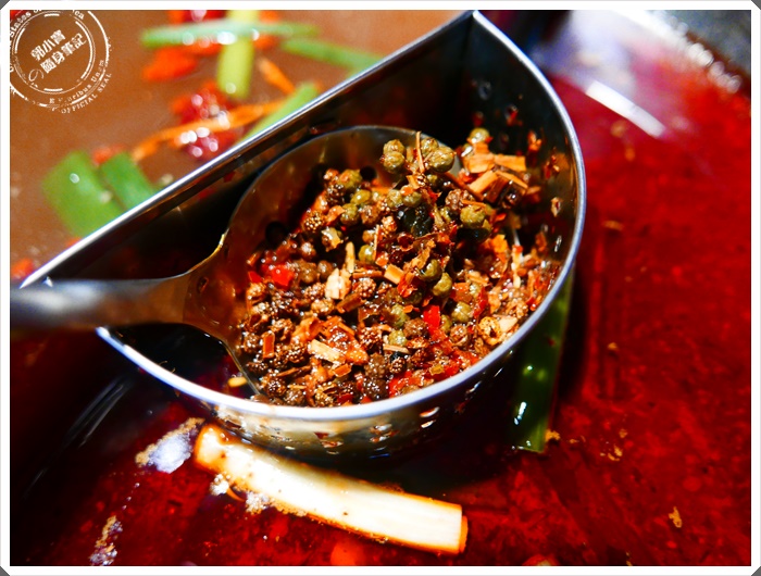 | 撈起來後才知道,原來郭主義師父說花椒跟麻辣鍋提香的一些藥材都是放這裡面,客人才不會舀湯或是享受食材時去吃到花椒而嗆到,這確實是我吃麻辣鍋的困擾,這方法真的超貼心的!! |