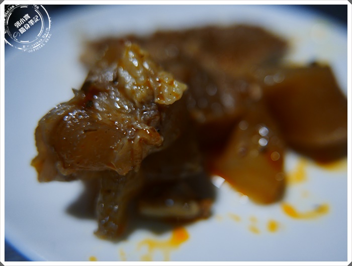 | 連牛筋也超豪邁的,牛筋通常下鍋煮了一下會小一號,有時候煮一煮還會不見,所以我超愛它們家切的大塊的牛筋,入口帶點脆口外層黏嫩的滋味令人無法自拔。 |