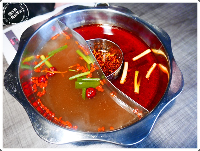 | 我們就直接點了麻辣鴛鴦鍋,鍋底湯頭就只有白湯跟紅湯,不過火鍋的器具滿特別的,中間還有小半圈,一開始還真不知道這是甚麼作用。 |