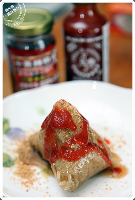 | 肉粽的話則是拉差香甜辣椒醬跟小美辣椒油都各有特色,拉差香甜辣椒醬是屬於甜辣醬類,帶點微酸沾上肉粽滋味很搭,肉粽跟小美辣椒油就會比較單調,因為更會把辣的辣度提上來,所以密技就是吃肉粽時候把拉差香甜辣椒醬跟小美辣椒油混再一起,真的很好吃XD |