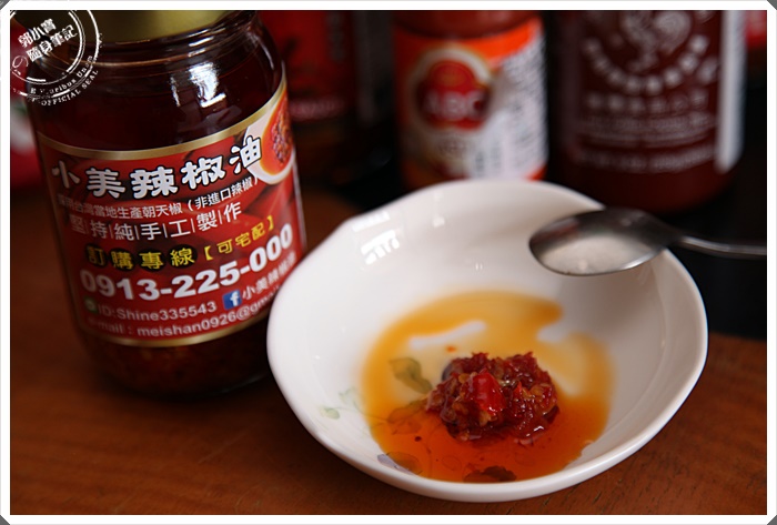 最主要的就是她的辣椒水是酸辣口味,很多人喜歡淋在麵條上,在夏天淋上這辣椒水其實還滿開胃的,但是對我來說就是太稀了一點,對喜歡辣的人來說口味太單薄了。 |