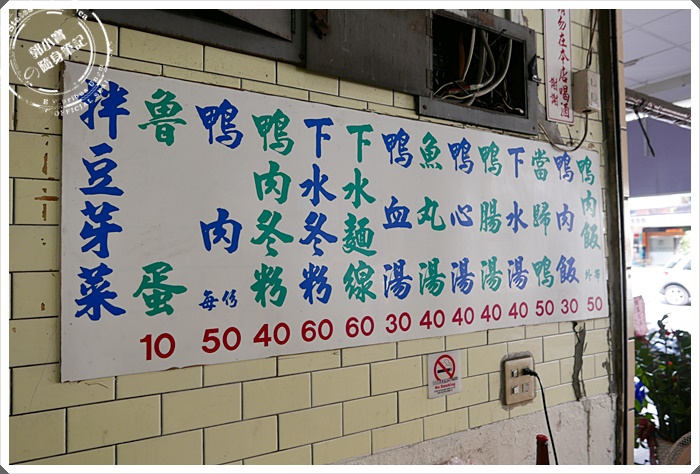 | 價目表~~簡單的幾樣東西就能夠賣的嚇嚇叫,這就是老店的厲害之處!!比較不一樣的就是鴨肉飯如果外帶是$50,而內用是$30~~ |