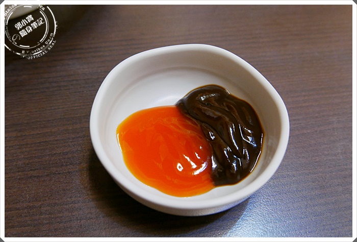 | 先前提到的醬料當然不要錯過阿~~分兩個碟子很浪費所以寶妹都會這樣加半邊半邊~~ |
