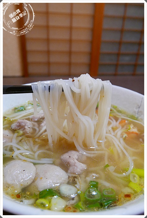 | 上菜嘍~~美味的越式河粉!寶妹還是喜歡喝湯的,因為這樣才是道地口味,肉片其實不少底下都還有肉片,兩尾蝦子,還有配上豆芽以及丸子 |