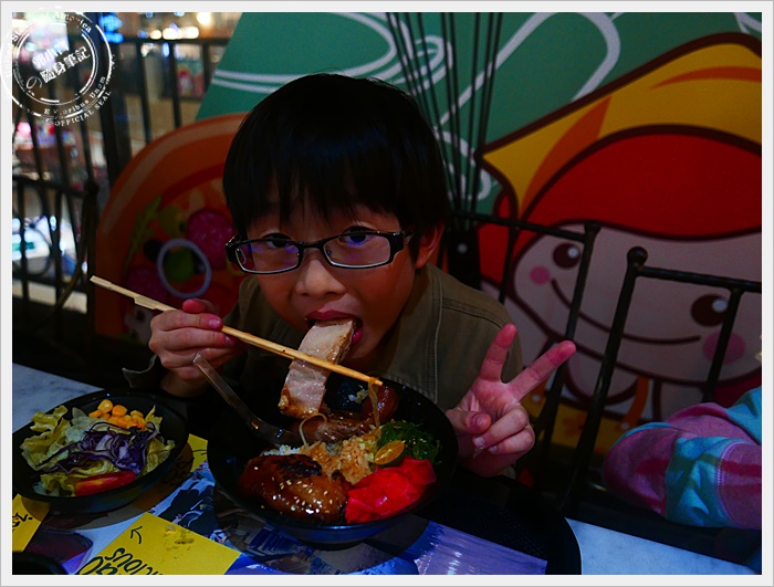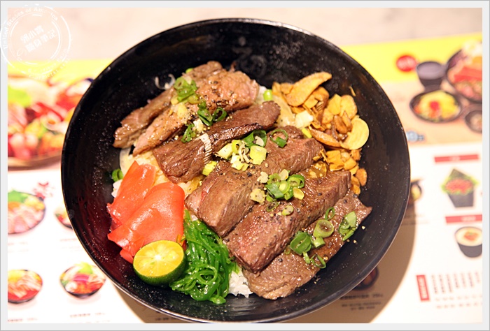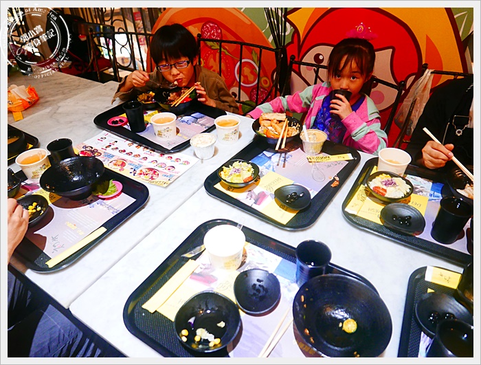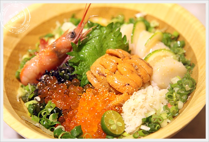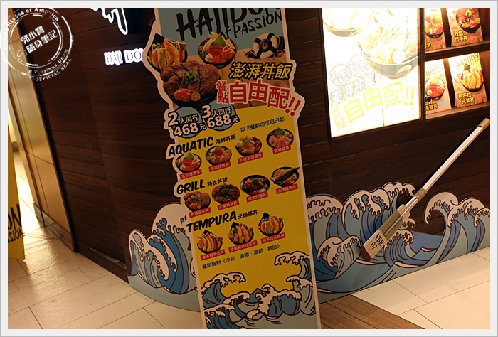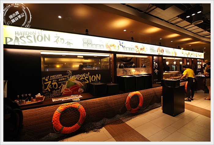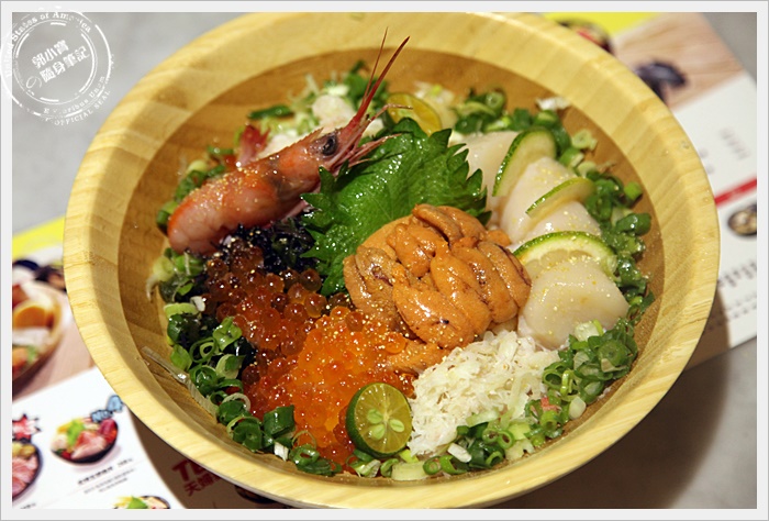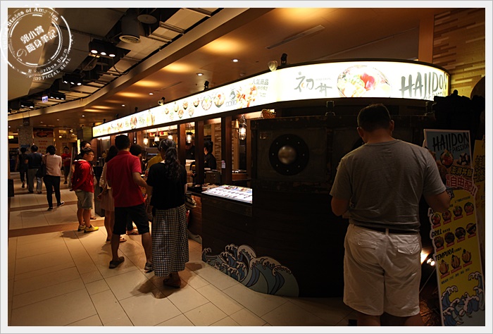 初丼的位子還滿大的,相當顯眼,人潮也超多的,全家人走近一看就馬上決定選擇她了,因為她的餐點種類還滿多的,且有適合大人跟小孩各種類型的口味XD |