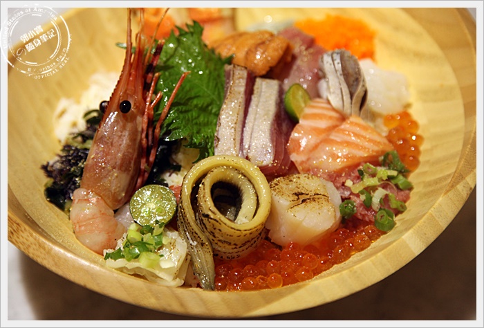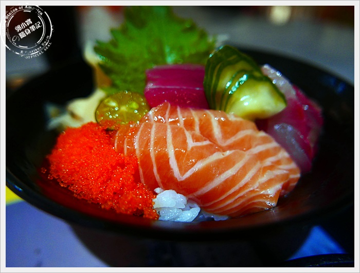 | 第一碗端上來的時候我就還滿驚訝的,第一次看到美食街裡面的餐廳少數照片跟實體真的是相差不遠的,看起來相當的可口,魚肉顏色看起來也不錯,不會乾巴巴的,六片生魚片加上玉子燒還有蝦卵,雖然說原價是248,但是組合價其實更便宜一點。 |