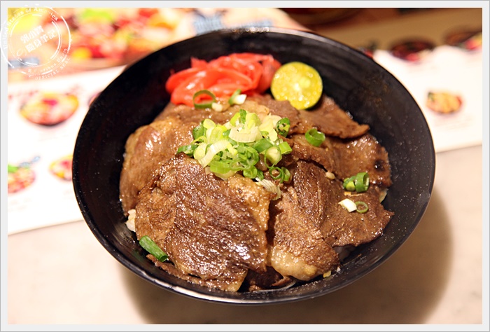 | 姊姊點的蠻牛丼看起來挺過癮的,我喜歡他們熟食丼飯類的醬汁,偏甜帶點鹹,有點醬味很好在白飯搭配,攪拌後每一口都是甜而不膩的大口大口扒飯,牛肉份量頗多且切的沒有很薄,不喜歡半生不熟牛肉的朋友建議可以點這一套丼,牛肉帶點嚼勁口感,油花還滿甜的。 |