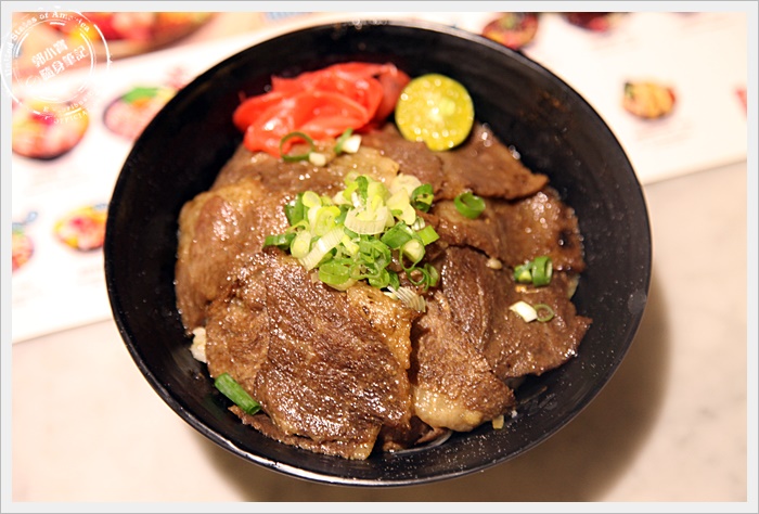| 燒豚丼的驚艷度就沒有那麼高了,豬肉片感覺看起來是使用五花肉,但是炙燒的功力不錯,把肥肉的部分多餘的油脂去除,瘦肉部分不會卡牙,肥肉部份吃起來帶點彈牙口感卻不膩口。 |