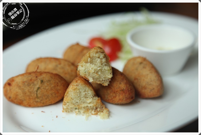 | 乍看之下感覺單價滿高的薯茸馬介休球,後來得知新帆船的做法之後瞬間感覺滿便宜的,目前新帆船的薯茸馬介休球還是手工製作,真材實料的馬鈴薯搗泥後用湯匙手工捧球一顆顆的製作出來,上桌的時候說真的,我沒想過馬鈴薯的香氣也可以那麼的濃郁誘人。 |