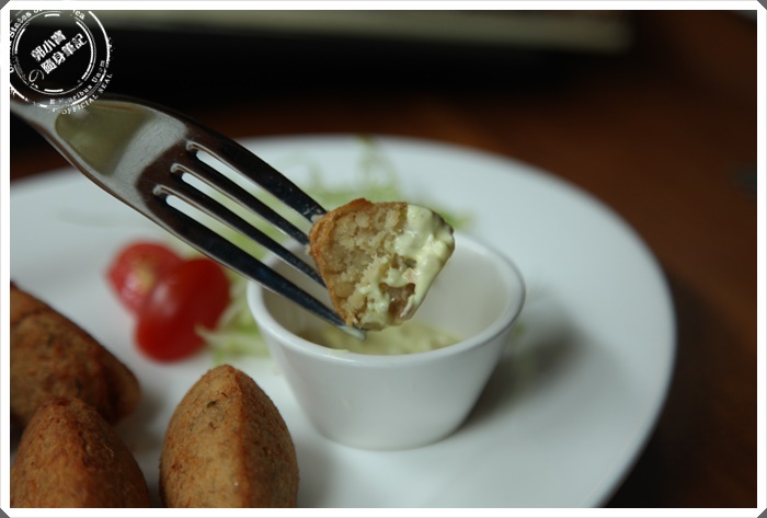 | 把她切開一半更讓我驚訝,可以完整的看到馬鈴薯的纖維,單吃一口後更讓我感覺驚艷,這是我第一次吃到這種口感的馬介休球,那紮實的馬鈴薯帶著鬆軟綿密的口感,含在嘴裡似乎就可以融化般的感覺真的很厲害,外皮那輕脆搭配內餡及爆口濃郁香氣真的讓人一口就難以忘懷,它們的醬料也相當的特別,跟台灣的蜂蜜醬不一樣,不會過甜過膩反而將馬介休提味,完全不一樣的風味。 |