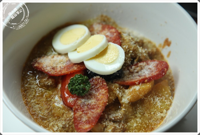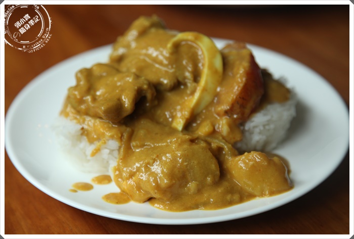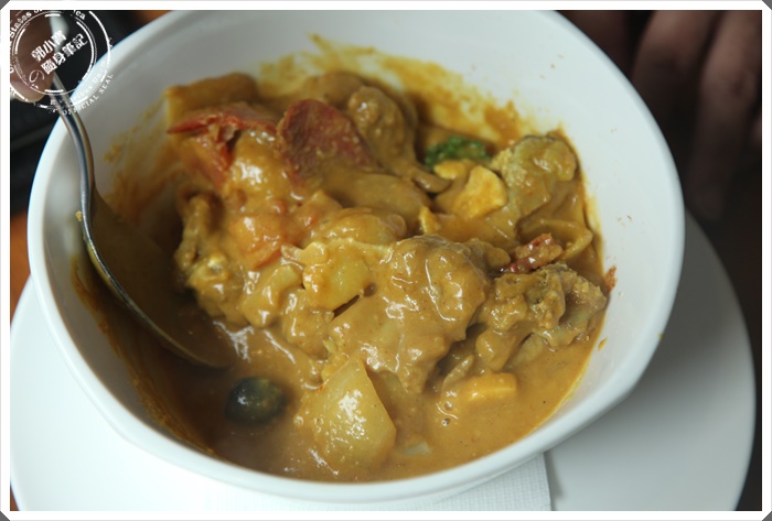 | 一上桌光是香氣就讓我拍照速度加快了,這椰香也太厲害了,不是很濃郁的那種,但是你就是可以感受到那舒服的淡淡椰香飄了過來,裡面的雞肉看起來還滿多的,還有葡式香腸,只要你吃過一次葡式香腸你也會跟我一樣喜歡上她的。 |