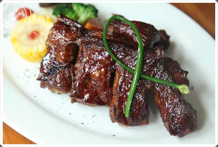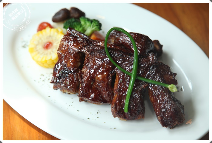 | 肋排確實有獨到的功夫,選的豬勒排是我喜歡的,沒有過多的油脂吃起來一點都不會膩口,吃豬肋排其實就是直接用手拿大口的啃,醬汁看起來濃稠卻不顯膩,其實我對美式勒排都會覺得過膩,沒想到新帆船葡澳餐廳的燒肋排滋味確實頗令人驚艷。 |