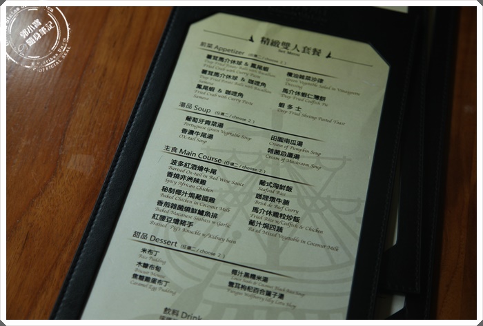 | 新帆船澳葡餐廳的餐點其實滿多樣化的,從午晚餐的澳葡菜到下午茶的扒包跟甜點奶茶通通都有,不管任何時候都還滿適合來坐一坐的,這次是約中午來吃飯,下次我還滿想來試試看他們家的扒包,台灣好像不是很容易可以吃到道地的扒包。 |