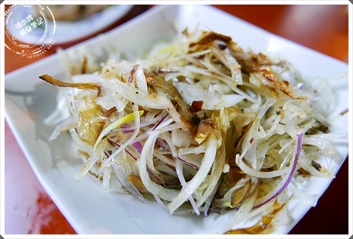 | 他們家的招牌就是這道~涼拌洋蔥!!!還加了柴魚片跟醬汁,非常有日式的口味,尤其洋蔥切的剛剛好,入口就是一陣微微的辛辣刺激感,在搭上一口啤酒瞬間夏日的感覺超激升的~~ |