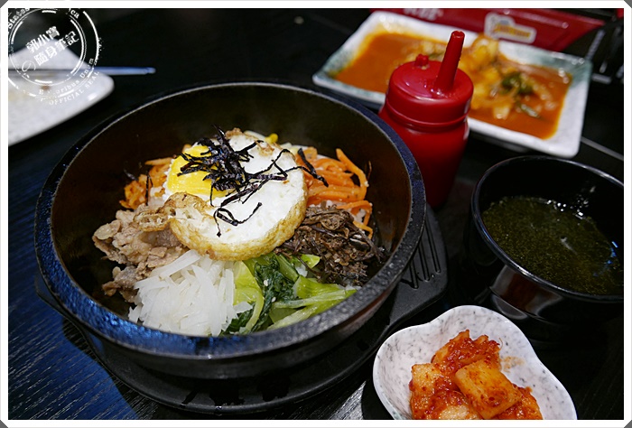 | 石鍋拌飯還有附上韓式的還海帶芽湯唷!!!寶妹完全是被他的超值給吸引來的,比較在市區中這樣的價格真的太佛心了啦~~而且還不收你服務費的XDDDD |