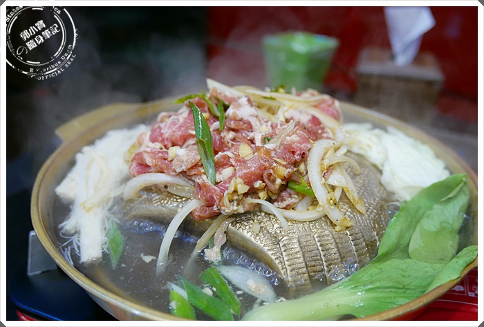 | 因為點選豬肉,所以一定要煮熟了肉片才能食用,此時底下的高湯已經大滾,先行喝過一口湯後湯是比較鹹底的,但蔬菜很新鮮,也還可以再請服務人員幫你加湯 |