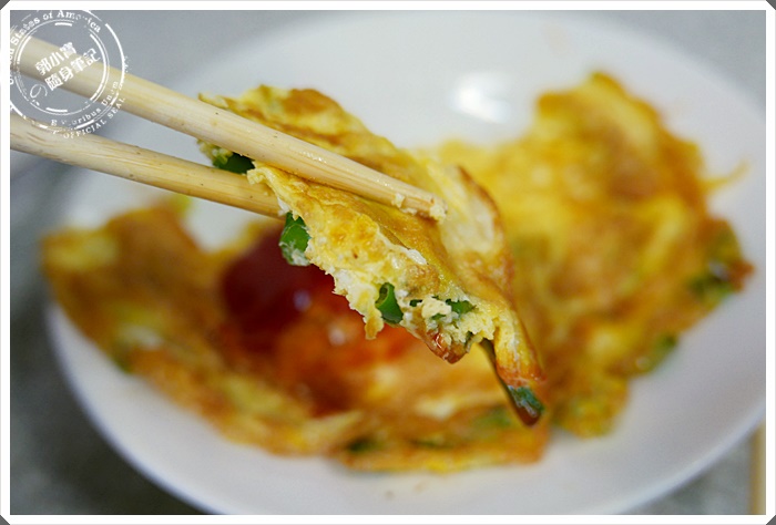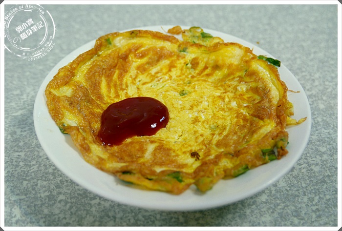 | 炒蔥蛋~~光看就很有媽媽的家常味,蛋黃顏色很深應該是土雞蛋煎製的,上面還有一些番茄醬。 |