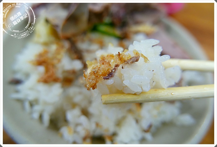 | 鄉村鴨肉飯的鴨油其實不太油膩,比較像雞汁那樣的清香清淡,整碗飯的精華就是這個特殊的油蔥酥了~鄉村的油蔥酥是特別炸過,口感超級有酥脆感,一般我們在外頭吃到的油蔥酥都是細細的末,而鄉村的油蔥酥是吃起來像蛋酥一樣的脆,配上飯一起入口都還聽得到像是吃餅乾一樣的卡茲卡茲聲音唷!! |