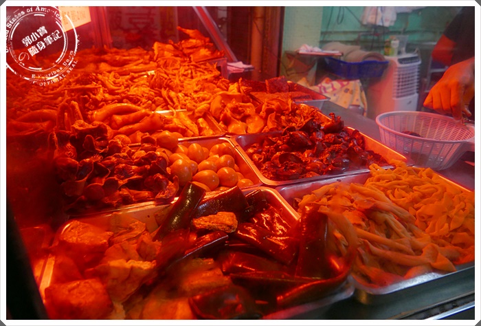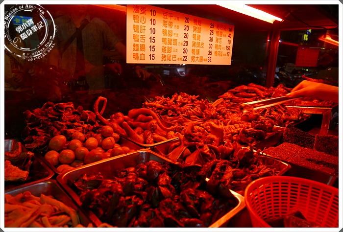 | 櫥窗中都照著超級紅紅的燈,所以沒辦法拍下他們滷味的真正面目~~但是煙燻滷味的種類真的特別多,而且站過去選會聞到香氣十足的煙燻味向你飄來! |