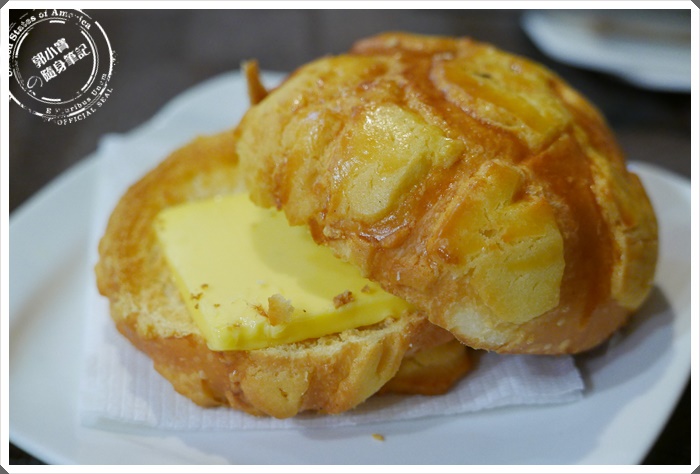 | 冰火波蘿油我想是現在台灣人滿愛吃的港點點心,菠蘿油王子的菠蘿麵包式自製的,不是外面叫貨進來的那種麵包,陪吃飯的姊妹因為非常常去香港吃波蘿油,觀察了一下還咬了一口說好吃,一吃就知道是自己做的~~加上牛油實在是分量足夠。不管是正餐或是點心都非常棒啊~ |