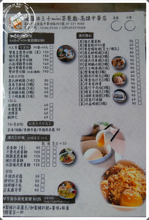 | 進來後門口有點餐單要自己找位置來填寫買單。沒有想到品項也挺多的,不知道朋友們是不是也有到過香港類似的茶餐廳呢?香港茶餐廳在賣的東西也是會有很多種類,甚至中式套餐都會有提供,底下右下角還有早午餐的優惠時光 |