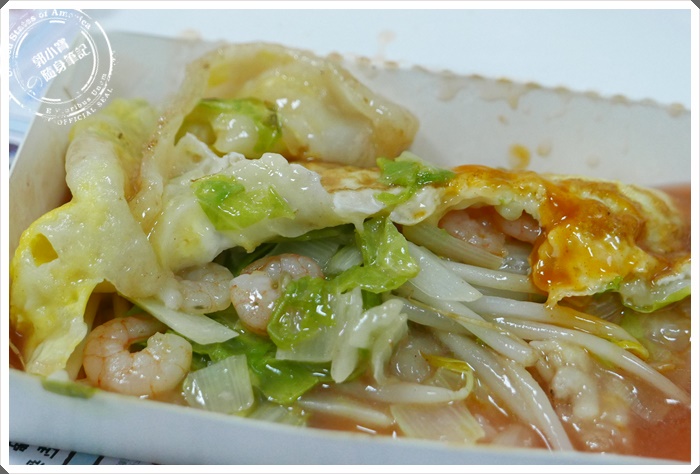| 寶妹吃的是蝦仁煎$50,直接翻開給各位看看裡面,小小的蝦仁,卻是口感新鮮脆彈,在這物價飛揚的時代寶妹覺得食材只要安全新鮮,就算量少一些些民眾還是會買單的! |