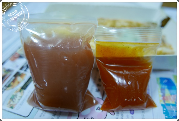 | 吃蚵仔煎醬料超重要,當然是一口氣就給他全加進去!在放上一些些辣椒醬~~準備開動! |