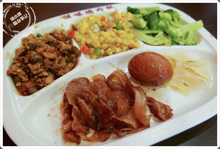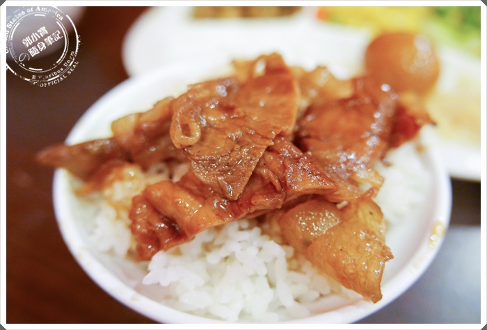 感覺這餐盤真的好復古,已經很久沒看過人家用這種小時候才看到的餐盤耶@@選三樣菜,還附贈薑片,滷蛋$10是寶妹另外加點的~~肉片大概有兩片的份量左右